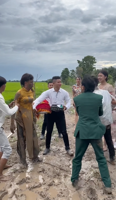 Mới đây, clip ghi lại cảnh gia đình nhà trai gồm bố mẹ chú rể, chú rể mang mâm quả sang nhà gái rước dâu được chia sẻ nhiều trên mạng xã hội. Sở dĩ clip này đang gây chú ý là bởi cảnh bố mẹ chú rể xảy ra xung đột, xô đẩy nhau ngã sóng soài trên đường đầy sình lầy. Mặc cho chú rể và những người thân khuyên can, bởi đây là ngày trọng đại của con trai thì cặp vợ chồng này vẫn liên tục cãi vã, mâu thuẫn.