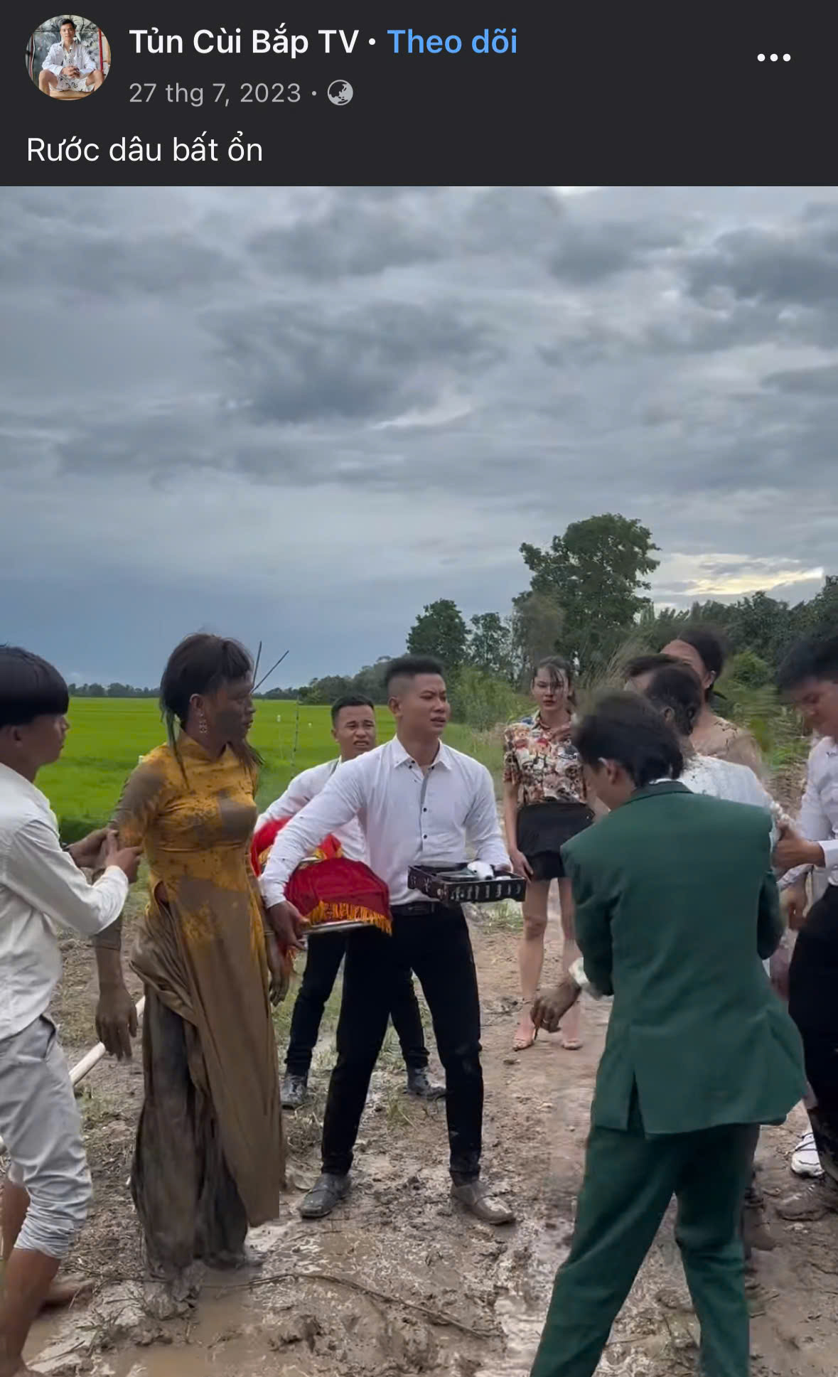 Theo tìm hiểu của chúng tôi, cảnh mâu thuẫn của bố mẹ chú rể nêu trên chỉ là một đoạn cắt nhỏ trong tiểu phẩm “Rước dâu bất ổn” được đăng tải trên kênh Tủn Cùi Bắp TV vào tháng 7/2023. Video quy tụ nhiều “diễn viên xóm” ghi lại cảnh đi rước dâu đầy bất ổn của một gia đình ở miền Tây. Cuối cùng, cả hai thống nhất làm lành, mâu thuẫn để giải quyết sau vì đây là ngày vui của con trai.