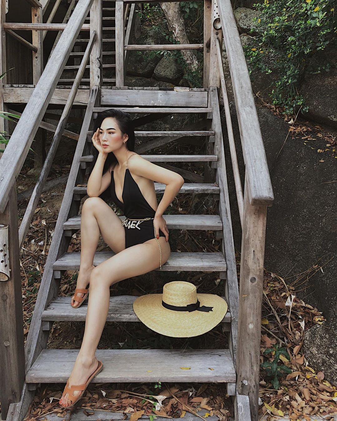 Ngoài ra, cô bạn cũng tham khảo dáng pose hình từ các hot instagram như dáng bambo và chuẩn bị một số phụ kiện như nón cói/ túi cói, kính sẽ làm bức hình có điểm nhấn và tay chân mình bới "loay hoay" vì có các trợ thủ đắc lực.