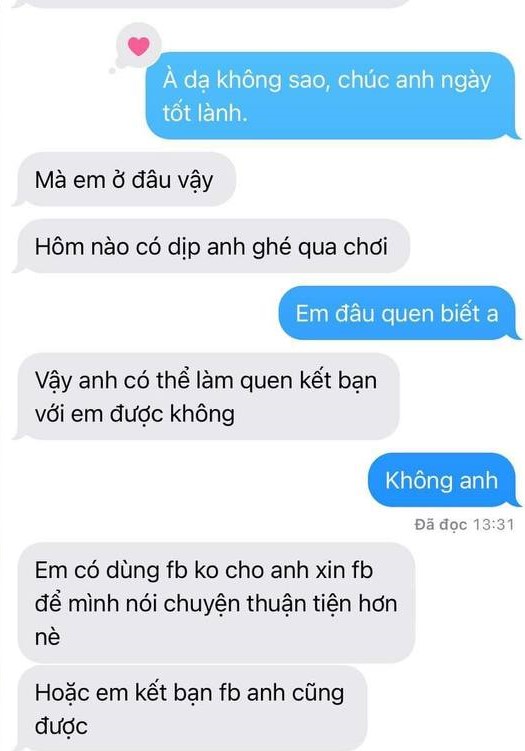 Còn với C.M, cô bạn cho biết cả mình và bạn cùng phòng trọ đều gặp trường hợp này: “Mình còn được nhận tin nhắn bằng tiếng Trung, nội dung cũng tương tự như vậy. Mình thấy khả nghi nên cũng kệ thôi không trả lời luôn. Còn bạn mình thì trò chuyện cũng khá lâu, tới lúc qua cả ứng dụng khác để nói chuyện rồi. Tuy nhiên, càng nói thì bạn mình nhận ra những dấu hiệu lạ nên đã dừng lại ngay. Có vẻ không phải ai cũng biết đây là lừa đảo đâu vì chỉ nghĩ đơn giản là làm quen thôi”.