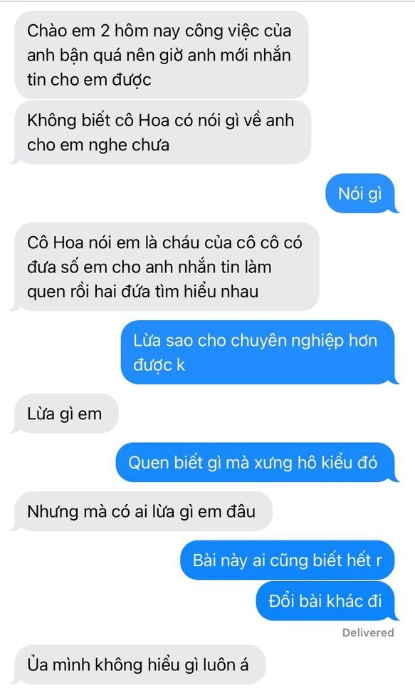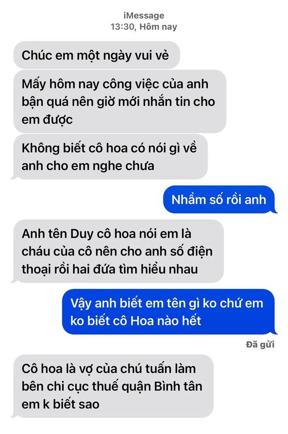 “Chào em, anh là A được cô B giới thiệu em là cháu của cô và cho số điện thoại làm quen” - đây là cách mở màn quen thuộc của những tin nhắn lừa đảo. Và khi bạn trả lời rằng, không quen biết với cô B kia, họ sẽ bày tỏ bản thân nhầm lẫn nhưng đã có duyên thì “tiện” làm quen luôn.