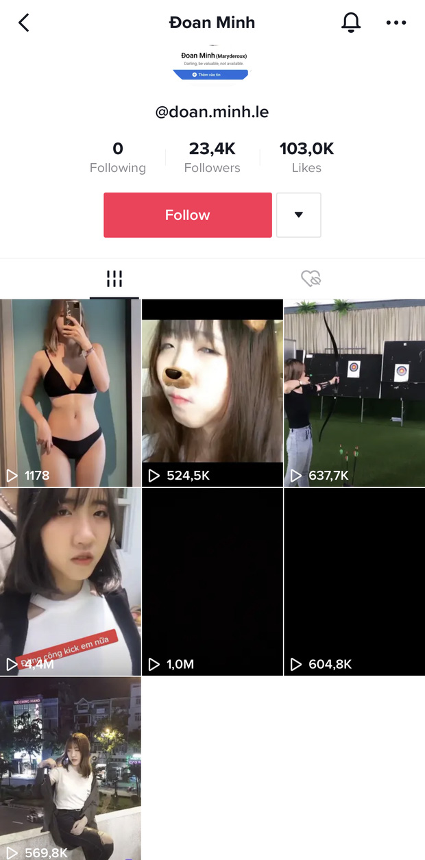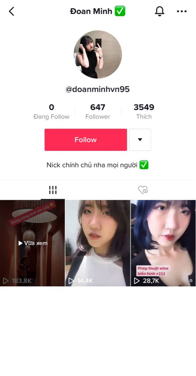 Ngoài tài khoản kể trên, tình trạng giả mạo tài khoản của Đoan Minh đang càng lúc càng tràn lan hơn khi hàng loạt account fake đã xuất hiện. Cùng với "thủ đoạn" như trên, những tài khoản này sử dụng tên của nữ chính và những hình ảnh, video cũ của cô để cắt ghép làm nội dung.