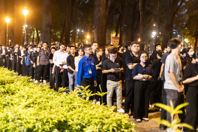 Cũng trong số những người đến sớm, Thanh Hiền (27 tuổi) tâm sự: "Đoàn người xếp hàng dài mấy con phố, càng về chiều tối càng đông. Ngoài các cô chú lớn tuổi, có rất nhiều bạn trẻ đứng trang nghiêm, không chen lấn, kiên nhẫn xếp hàng dài, tranh thủ thời gian buổi tối đến viếng. Mình vừa thấy xúc động, vừa thấy tự hào khi được đứng đây, được nhìn thấy một thế hệ trẻ biết ơn và đầy lòng yêu nước".