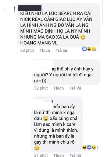 Tuy nhiên chàng trai thừa nhận rằng nếu cô gái có ngoại hình không được đẹp thì anh có thể chấp nhận nhưng vì bạn ấy là gay nên "mình chịu rồi".