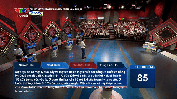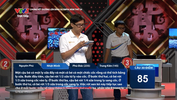 Cụ thể, ở lượt câu trả lời cuối cùng của Nhật Minh (có thời gian suy nghĩ kéo dài 20 giây), kết quả trận đấu ở thế giằng co khi Phú Đức hơn người về nhì là Nguyên Phú chỉ với 5 điểm. Đến khi Nhật Minh trả lời sai, Phú Đức đã nhanh chóng bấm chuông để dù có không trả lời được, nam sinh này vẫn không cho Nguyên Phú có cơ hội giựt điểm.