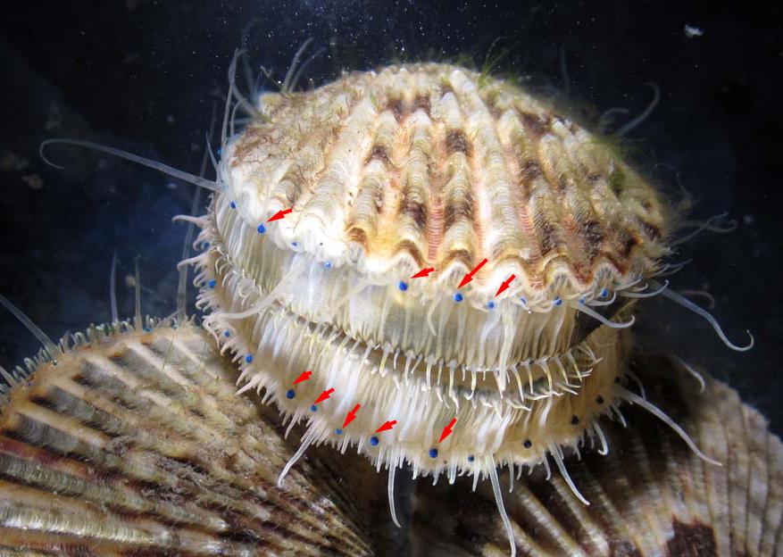 Một con sò có thể có trên 50 cái mắt! Loài sò điệp có những con mắt nằm dọc trên lớp phủ của chúng, ngay gần vành vỏ sò. Mắt chúng nằm ở cả vành trên và vành dưới của vỏ sò.