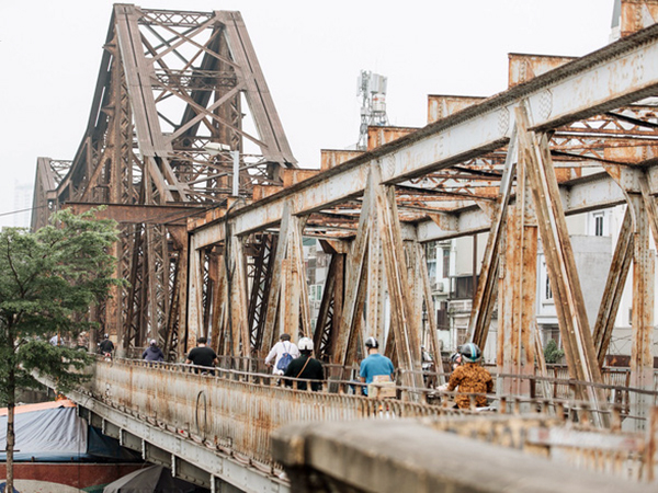 Cầu Long Biên do Pháp xây dựng từ 1898 đến 1902 là cây cầu thép đầu tiên bắc qua sông Hồng nối quận Hoàn Kiếm với quận Long Biên. Cầu dài 2.290 m qua sông và 896 m đường dẫn, gồm 19 nhịp dầm thép đặt trên 20 trụ cao hơn 40 m (kể cả móng), đường dẫn xây bằng đá. Cầu dành cho đường sắt đơn chạy ở giữa, hai bên là đường dành cho xe cơ giới và người đi bộ. Đường cho các loại xe là 2,6 m và luồng đi bộ là 0,4 m.