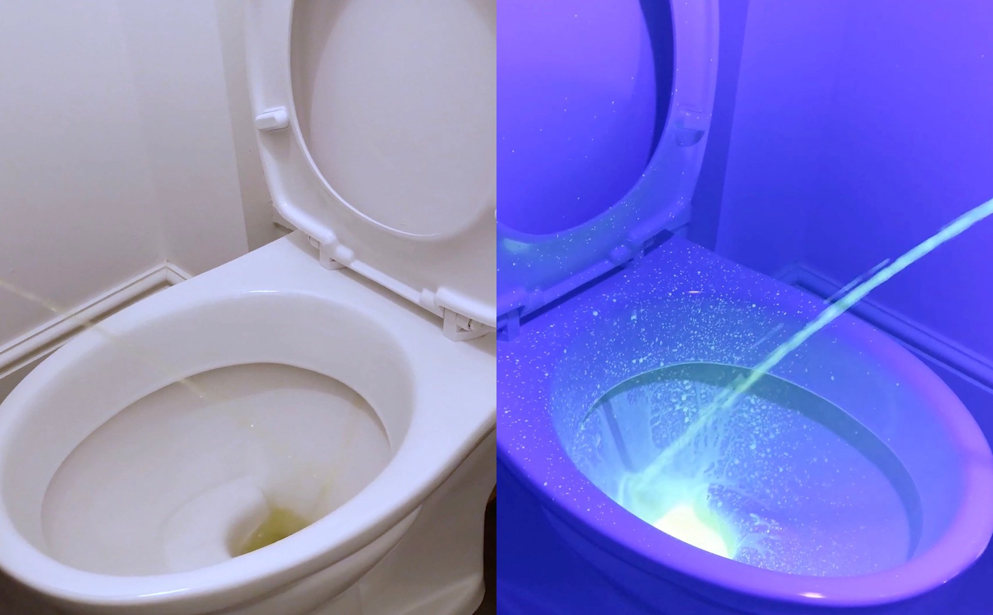 Nhóm nghiên cứu người Anh đã dùng nước pha với chất huỳnh quang, chiếu đèn tia cực tím để xem khi đứng tiểu thì nước sẽ văng ra sao. Họ dùng một cái vòi đường kính 6mm, dòng chảy 20ml/s trong vòng 10 giây, mô phỏng việc đi tiểu của một đàn ông trưởng thành với lượng nước tiểu là 200 ml. Dòng nước tiểu là dòng xoắn không đồng đều.