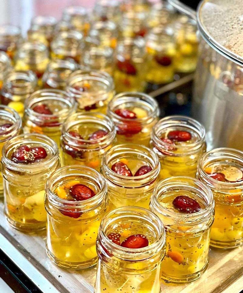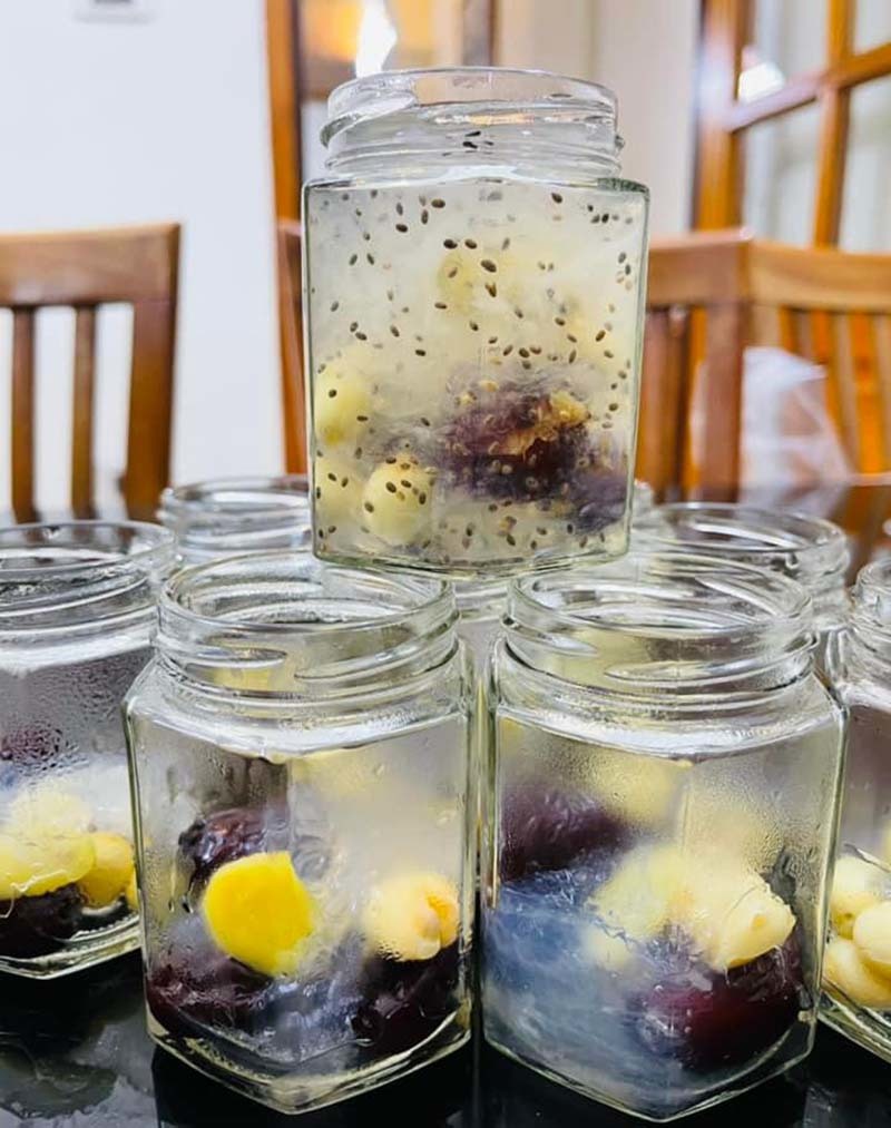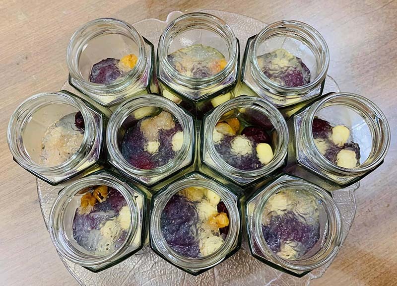 “F0 bùng nổ nên khách đặt yến về ăn tăng sức đề kháng cũng nhiều hơn hẳn”. Chị nói và cho biết, yến chưng ngoài yến còn có hạt chia, táo đỏ, long nhãn,... Theo đó, 1 lọ yên chưng 200ml hiện có giá 180.000 đồng, còn lọ 100ml giá 90.000 đồng. Một ngày chị chưng khoảng 70-80 lọ vẫn bán hết veo. Thậm chí có những ngày chị phải từ chối bớt khách vì không làm xuể.
