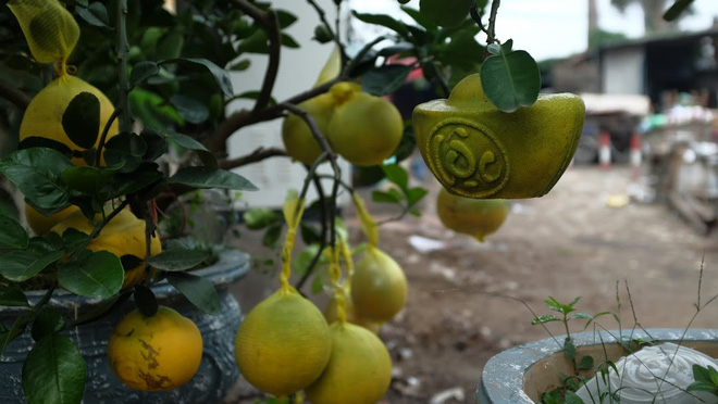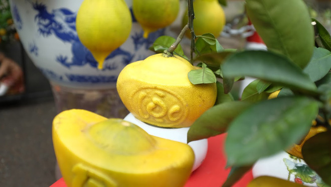 Anh Phan Quang Huy (tại Văn Giang, Hưng Yên) chủ nhân của những trái bưởi cho biết, năm nay nhà vườn làm được 200 quả bưởi hình thỏi vàng và đưa về Tứ Liên, Hà Nội để bày bán. Đây là loại bưởi Diễn hình thỏi vàng, in chữ Tài - Lộc có giá 500.000 đồng/quả. Riêng những quả nặng từ 1,3- 1,4kg có giá 1,5 triệu đồng.