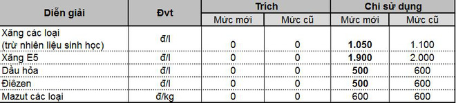 Đồng thời, chi sử dụng Quỹ BOG đối với xăng E5 RON 92 ở mức 2.000 đồng/lít, xăng RON 95 ở mức 1.100 đồng/lít, dầu diesel, dầu hỏa và dầu mazut ở mức 600 đồng/lít/kg.