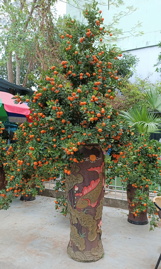 Được biết, nhà vườn này vừa bán một chậu cây cảnh tương tự cho một người chơi ở TP Thanh Hóa với giá 18 triệu đồng. Những chậu cảnh này ngoài dáng cây lớn, thế đẹp, sum suê quả thì điểm nổi bật là chiếc chậu rất lớn, hoa văn bắt mắt.