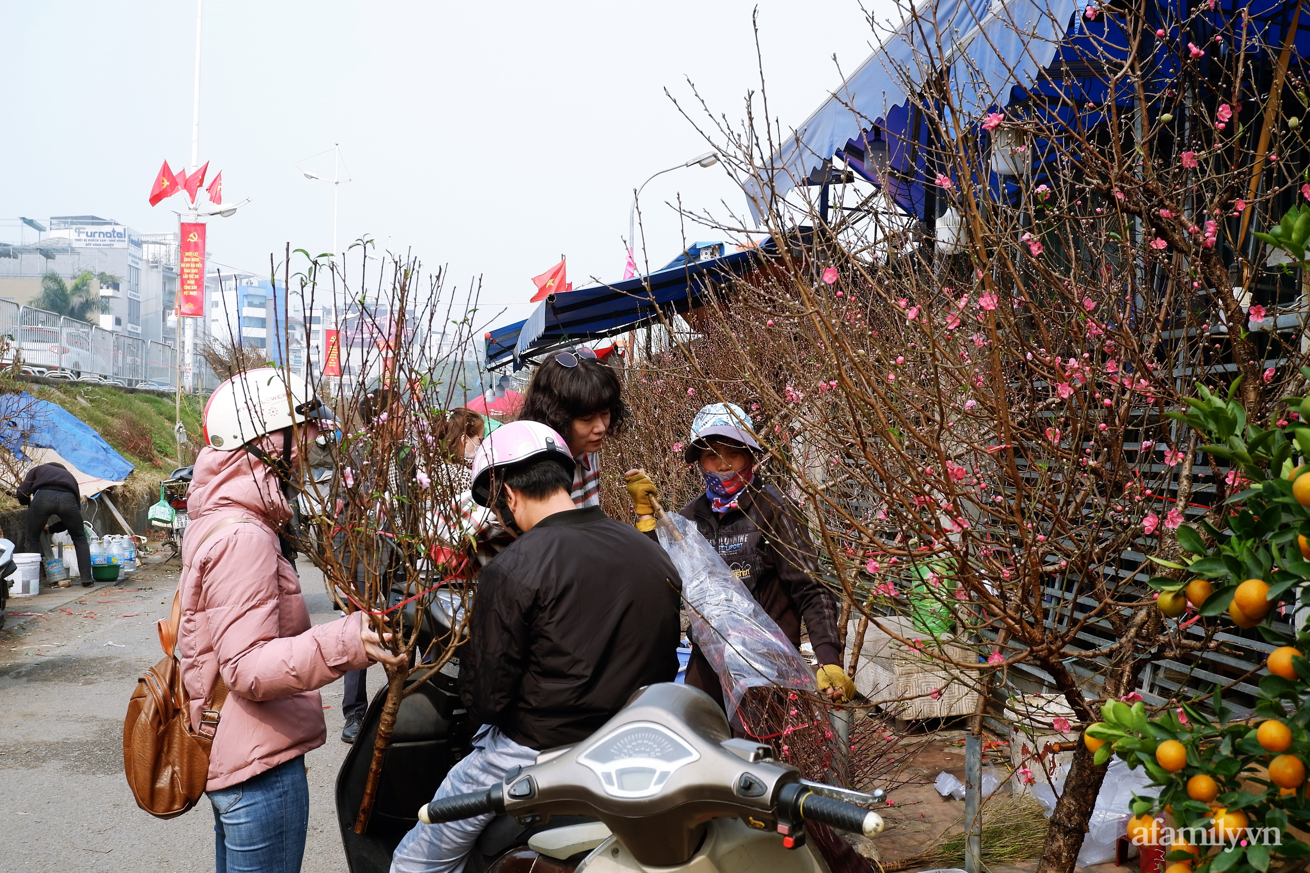 Chỉ còn 2 ngày nữa thôi là đến Tết Nguyên đán Tân Sửu 2021 tại chợ hoa Quảng An (Tây Hồ) đã đỏ rực bởi hoa đào được bày bán với đủ các loại hoa đa dạng, những cành, cây đào ưng ý chơi Tết.