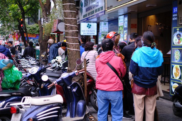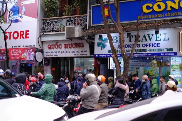 Việc người dân xếp hàng từ ngã tư Hàng Bông giao với Lý Quốc Sư, kéo dài tới tận cửa của tiệm giò chả nổi tiếng đã trở thành hình ảnh quen thuộc mỗi dịp cận Tết. Dù tiệm này không trang trí phô trương, không biển hiệu quảng cáo rầm rộ, nhưng mỗi ngày đều có hàng trăm chiếc bánh chưng cùng giò chả các loại được chuyển về đây theo từng chuyến lớn nhỏ. Ấy vậy mà chuyến nào về là hết nhẵn chuyến đó, ai chưa mua được thì vẫn phải tiếp tục xếp hàng chờ tới chuyến sau.