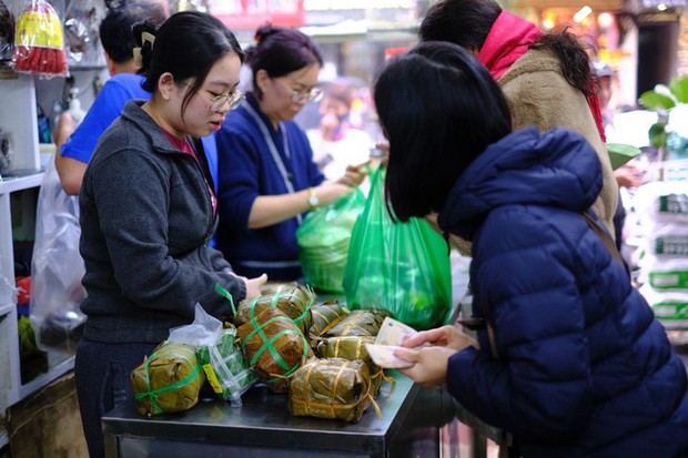 08/02/2024 22:4229 Tết, người Hà Nội xếp hàng dài mua bánh chưng, giò chả trên phố Hàng Bông