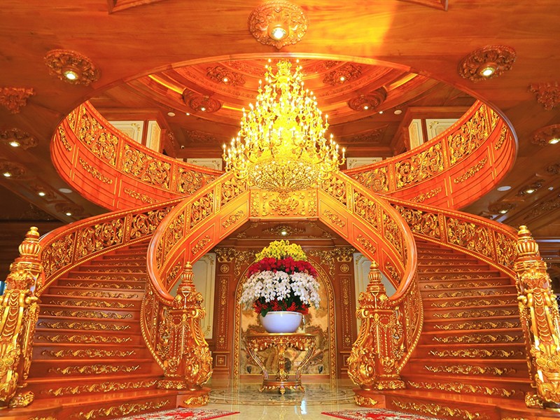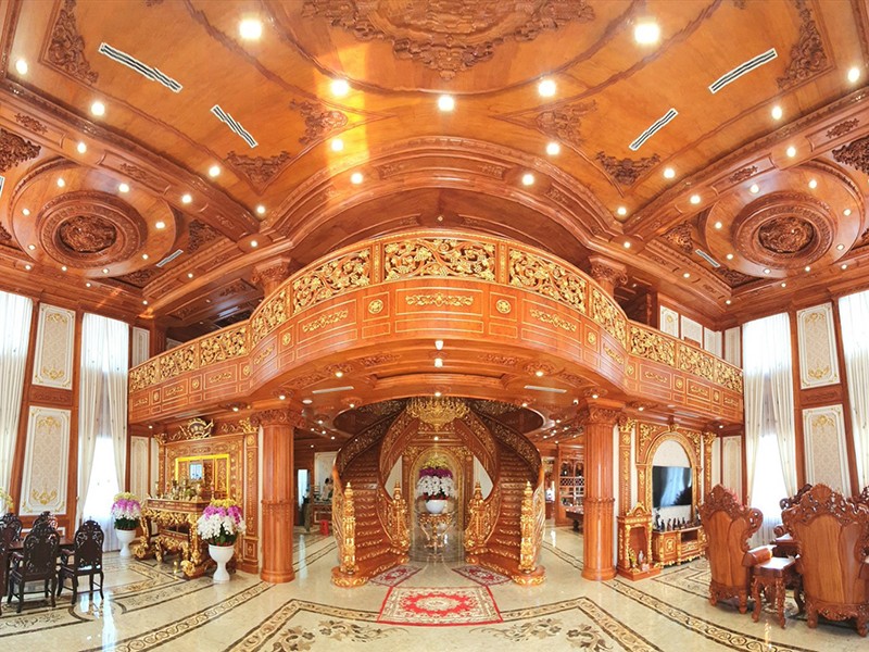 Dinh thự dát vàng thuộc sở hữu của một đại gia ngành vật liệu xây dựng có tiếng ở Long An nổi lên từ dịp Tết Nguyên đán 2022. Tòa nhà nằm ngay quốc lộ 1A - vòng xoay Tân An, được xây dựng theo kiến trúc 4 tầng mái vòm, sân vườn rộng thoải mái.