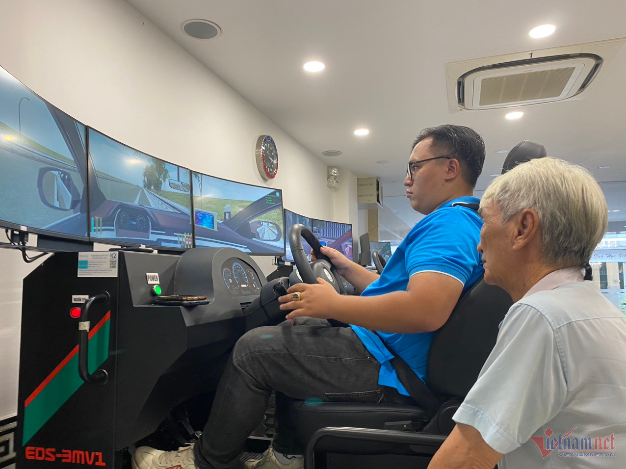 Lý giải nguyên nhân dẫn đến tình trạng học viên chóng mặt, đau đầu khi học trên cabin điện tử, ông N.V.D. (giám đốc một trung tâm đào tạo, sát hạch lái xe tại Bắc Giang) cho rằng, do cabin ảo được thiết kế gồm 3 màn hình nối nhau.