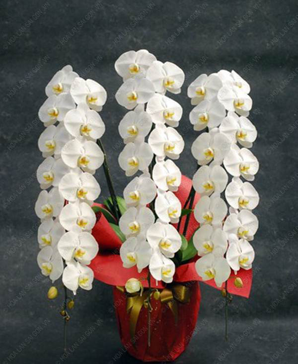 Hoa này có ý nghĩa mang đến phú quý cho gia chủ và tươi lâu, có 18-20 bông trên một cành hoa, dáng thanh cao sang trọng nên được bán với giá trên 10 triệu đồng mỗi chậu một cành. Năm nay loại lan này ra hoa đều và đẹp hơn nên mỗi cành có tới 30 bông.