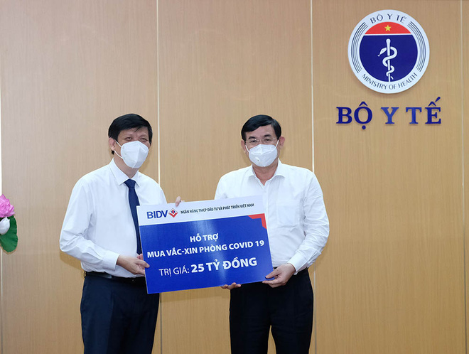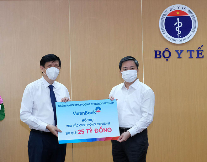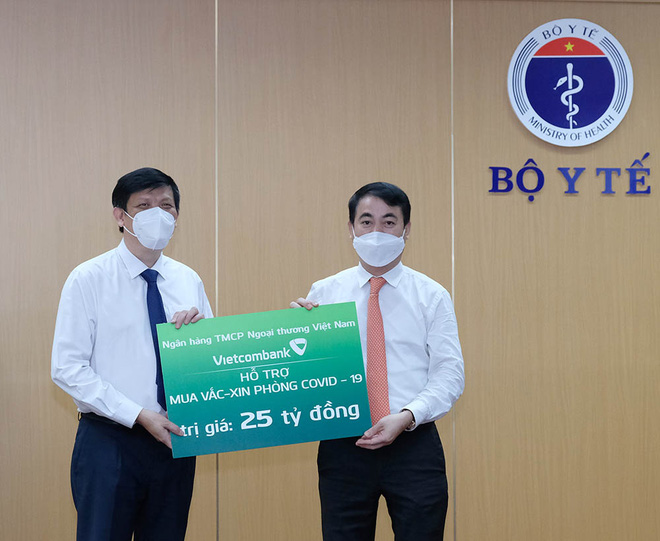 Tại buổi lễ, Ông Nghiêm Xuân Thành - Chủ tịch Ngân hàng TMCP Ngoại Thương Việt Nam (Vietcombank), Ông Lê Đức Thọ - Chủ tịch Ngân hàng TMCP Công thương Việt Nam (Vietinbank), Ông Phan Đức Tú - Chủ tịch Ngân hàng TMCP Đầu tư và Phát triển Việt Nam (BIDV), Ông Phạm Đức Ấn- Chủ tịch Ngân hàng Nông nghiệp và Phát triển nông thôn Việt Nam (Agribank) đã thay mặt 4 ngân hàng trao tặng 100 tỷ đồng (mỗi ngân hàng 25 tỷ đồng) vào Quỹ mua vắc xin phòng COVID-19.
