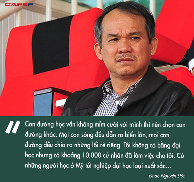 "Tôi không có bằng đại học nhưng có khoảng 10.000 cử nhân đã làm việc cho tôi. Có những người học ở Mỹ tốt nghiệp đại học loại xuất sắc…", ông chia sẻ.