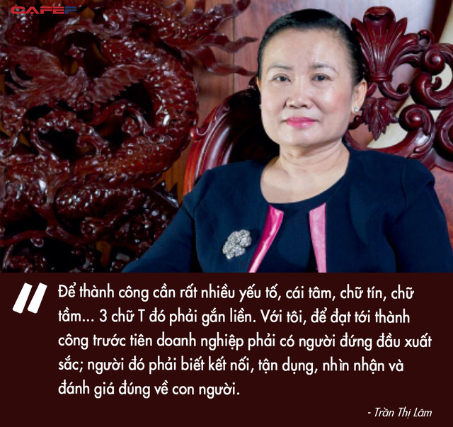 "Để thành công cần rất nhiều yếu tố, cái tâm, chữ tín, chữ tầm... 3 chữ T đó phải gắn liền. Với tôi, để đạt tới thành công trước tiên doanh nghiệp phải có người đứng đầu xuất sắc; người đó phải biết kết nối, tận dụng, nhìn nhận và đánh giá đúng về con người. Nếu người đó cho dù tài giỏi bao nhiêu nữa nhưng không biết liên kết, tập hợp nhân tài thì cũng khó thành công", bà nói.