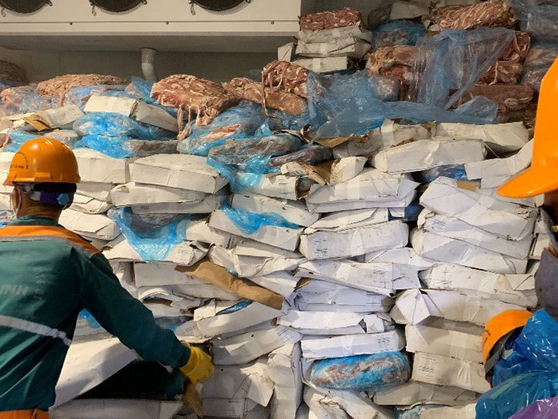 Qua 3 ngày làm việc, đoàn kiểm tra đã phát hiện trong kho lạnh chứa 72.023 kg nội tạng động vật là lòng non lợn và mũi lợn khô đã qua sơ chế và chưa qua sơ chế được bảo quản trong trong kho chứa hàng khô, kho cấp đông và kho cấp đông riêng biệt.