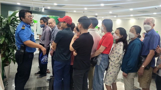 Bà Chi búc xúc nói: "Hôm qua, tôi cũng xếp hàng tại chi nhánh này, nhưng chưa đến lượt, ngân hàng hết vàng nên viết giấy hẹn cho tôi 9 giờ 30 sáng nay quay lại. Nhưng đến giờ, tôi quay lại, ngân hàng lại yêu cầu xếp hàng từ đầu. Nếu họ không hẹn giờ cố định, tôi sẽ đi từ 6 giờ sáng".