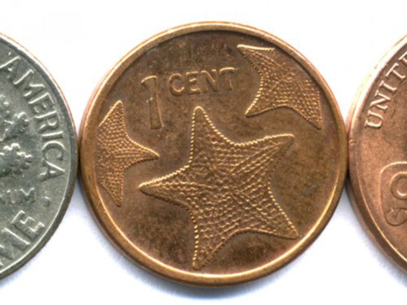 Tiền của quốc đảo Bahamas (ở vùng Caribean) có năm loại xu khác nhau. Đồng 1 xu khắc hình 3 con sao biển, đồng 5 xu khắc hình quả dứa. Các họa tiết như cá xương, hoa dâm bụt, thuyền buồm xuất hiện trên các mệnh giá khác.