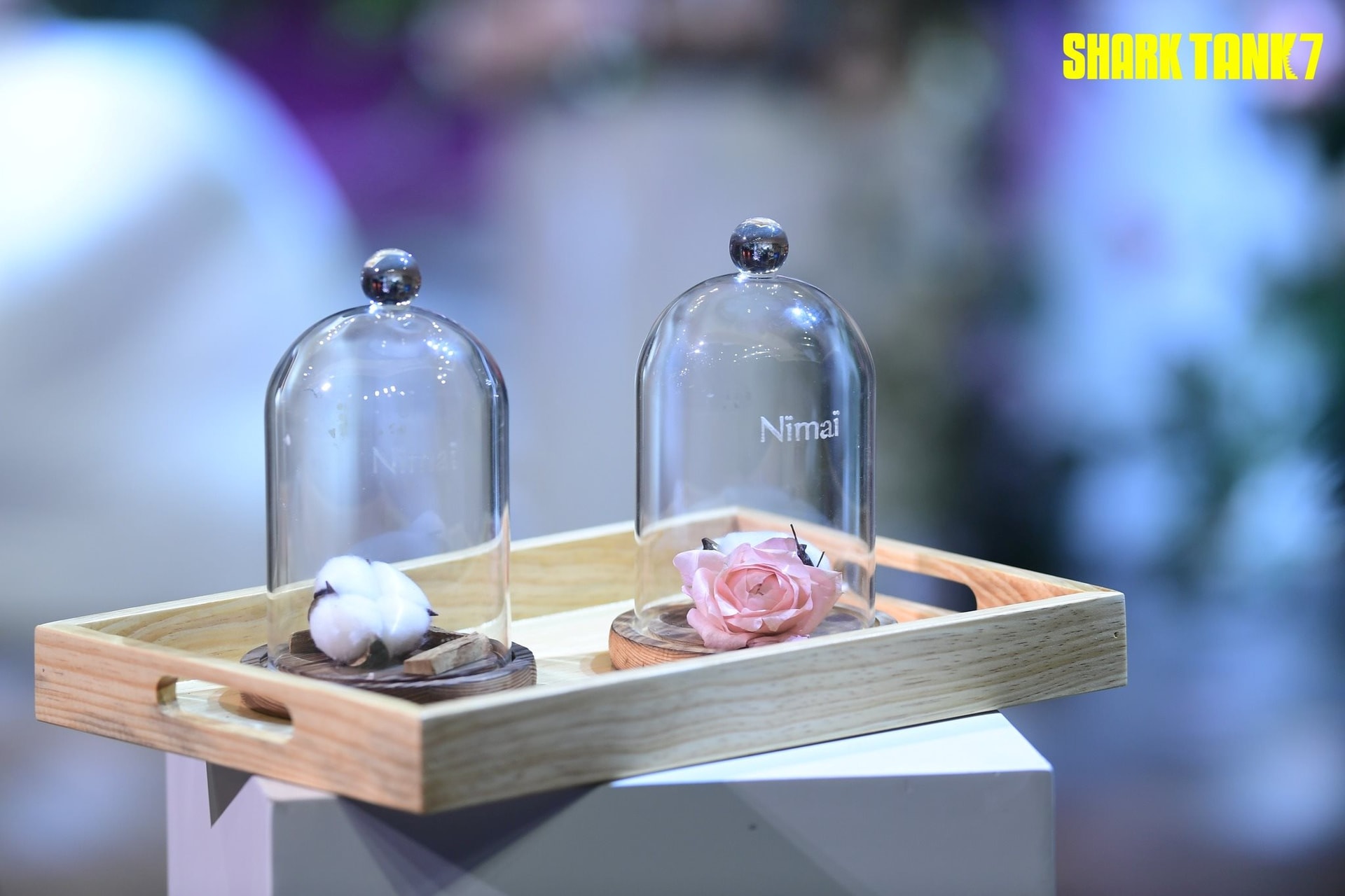 Đến với Shark Tank mùa 7 Thảo Nhi gây ấn tượng đầu tiên khi để cả 5 Shark bịt mắt lại bằng khăn lụa để cảm nhận rõ hơn mùi hương của Nimai.