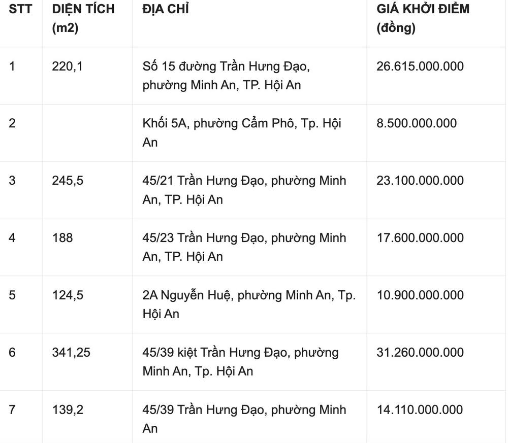Ngoài ra ngân hàng cũng rao bán khoảng 35 tài sản thế chấp là quyền sử dụng đất và biệt thự, nhà hàng, khách sạn 3-4 sao trị giá từ vài chục tỷ đồng đến vài trăm tỷ đồng. Như ở TP.Hội An, một bất động sản là biệt thự 3 sao có diện tích 686m được rao bán 110 tỷ đồng; nhiều khách sạn 3 sao, nhà hàng, homestay khác ở TP.Hội An cũng được rao bán từ 33-40 tỷ đồng.