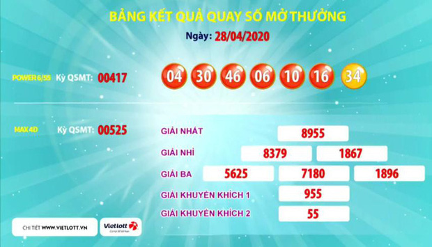 29/04/2020 14:50Ba vé Vietlott cùng trúng giải Jackpot 2 hơn 4,1 tỉ đồng