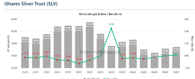 Động thái mua vào diễn ra sau chuỗi bán ròng trước đó. Cụ thể, trong 4 phiên liên tiếp, SLV đã giảm lượng nắm giữ khoảng 360 tấn bạc, với tổng giá trị ước tính gần 928 triệu USD, trước khi tạm ngưng giao dịch trong phiên 9/2.