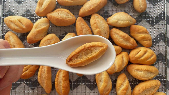 Bánh có vỏ khá dày, ruột đặc và thơm mùi bơ. Với sức ăn của 1 người lớn thì mỗi lần có thể đánh chén 10 - 15 chiếc.