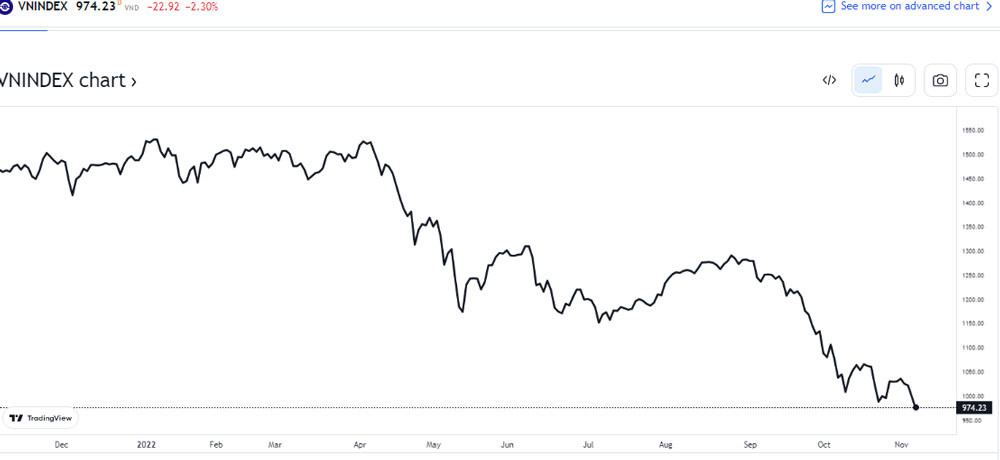 Tính tới cuối phiên sáng 7/11, chỉ số VN-Index giảm gần 23 điểm xuống dưới ngưỡng 975 điểm. Novaland là mã có ảnh hưởng tiêu cực nhất đến chỉ số VN30 khi lấy đi hơn 3 điểm.