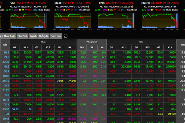Chốt phiên 10/1, bảng giá cổ phiếu trên sàn HOSE vẫn “đứng hình”, không có biến động nào. Tuy nhiên, chỉ số VN-Index chung cuộc được báo giảm 24,77 điểm xuống còn 1.503,71 điểm. Chỉ số HNX-Index giảm 10,8 điểm xuống 483,04 điểm.