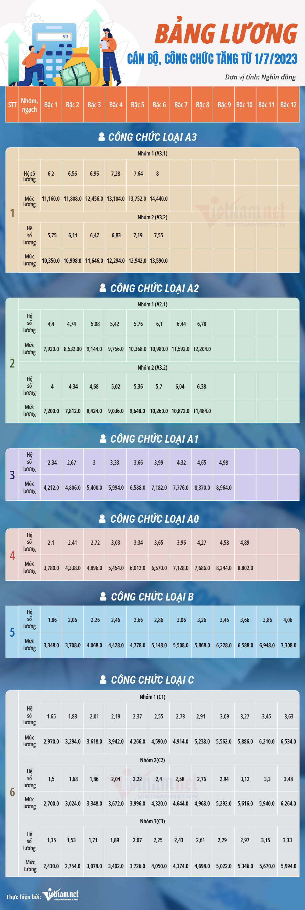 29/06/2023 23:23Bảng lương cán bộ, công chức tăng từ 1/7