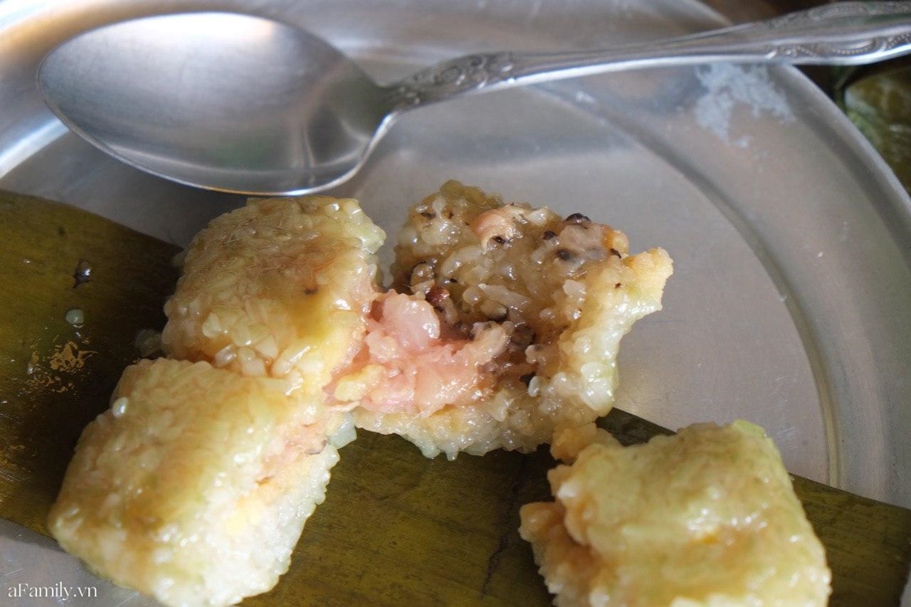 Khi bóc lớp vỏ bánh ra thì có thể thấy hạt gạo không bị nát. Khi cắt bánh có thể dễ dàng nhận thấy bánh có các nguyên liệu giống như bánh chưng bình thường với đỗ xanh, thịt mỡ và đặc biệt khá nhiều tiêu.