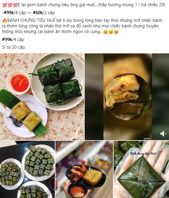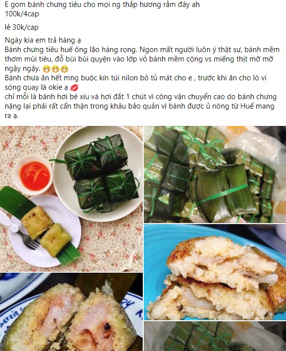 Gần đây trên thị trường rộ lên món bánh chưng mini được quảng cáo là bánh chưng tiêu ông già Huế. Loại bánh này được giới thiệu là có kích thước nhỏ, hương vị thơm ngon đặc biệt mà giá tưởng chừng rẻ: 20.000 - 50.000VNĐ/cặp.