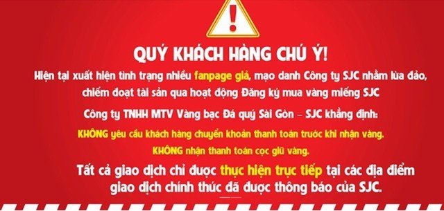 Theo SJC, các đối tượng thường đăng quảng cáo, mời gọi người dân đăng ký mua vàng miếng qua những fanpage giả. Doanh nghiệp khẳng định không yêu cầu khách hàng chuyển khoản trước, không nhận đặt cọc giữ vàng; mọi giao dịch đều được thực hiện trực tiếp tại các điểm bán chính thức.
