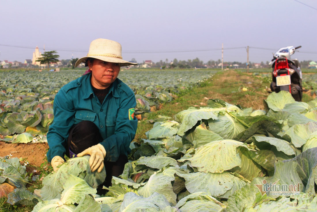 Trồng gần 10 sào bắp cải nhưng không có khách mua nên vợ chồng ông Quý phải chở xe kéo đi rao bán khắp các huyện lân cận như Yên Thành, Đô Lương,...