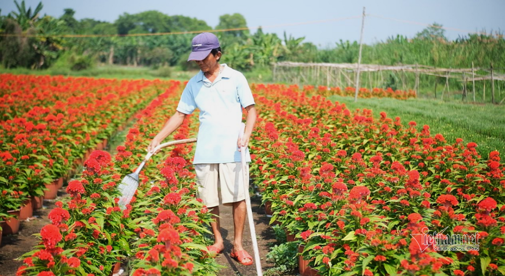 Năm nay, ông Hiệp trồng 5 loại hoa, gồm: hoa mào gà đỏ, mào gà vàng giá 150.000 đồng/cặp; cúc pha lê 120.000 đồng/cặp; cúc ruby 220.000 đồng/cặp,...