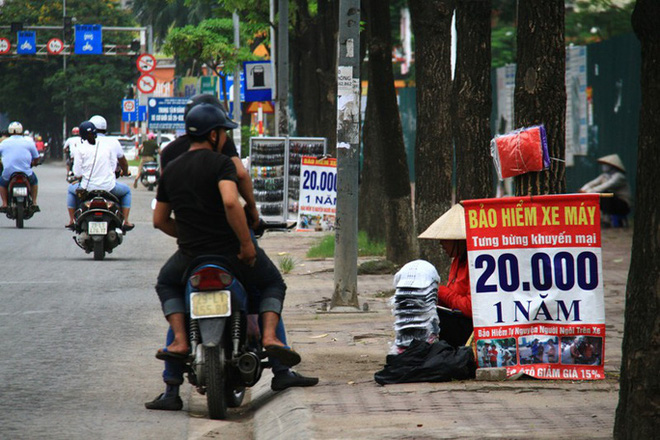 Tại Hà Nội, một số tuyến đường như Hồ Tùng Mậu, Nguyễn Xiển... xuất hiện nhiều điểm bán bảo hiểm với dòng quảng cáo "Bảo hiểm xe máy 20.000 đồng".