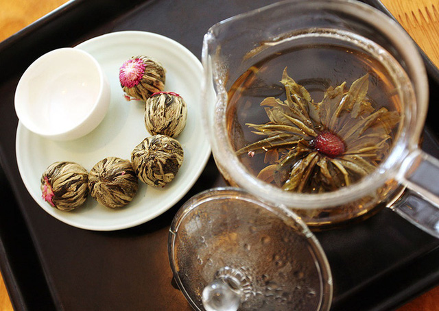 Viên trà hoa này vốn được kết từ lá trà và hoa sấy khô (hoa nhài, cúc, quế...) rồi buộc chặt một đầu và nén lạị. Chúng được bảo quản trong các túi hút chân hoặc hộp kín. Chỉ cần cho một bông trà vào bình thủy tinh, rót nước sôi và chờ từ 3 đến 5 phút, bông trà trong bình sẽ nở thành hoa, thậm chí cả một chùm hoa nhiều màu sắc khá tao nhã và không kém phần bắt mắt.