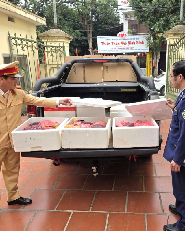 Qua kiểm tra, lực lượng chức năng phát hiện trên xe đang vận chuyển khoảng 100kg nội tạng lợn các loại, được chứa trong nhiều thùng xốp. Tại thời điểm làm việc, tài xế khai nhận số hàng đang trên đường giao cho khách tại phường Tam Điệp nhưng không xuất trình được bất kỳ hóa đơn, chứng từ hay giấy tờ nào chứng minh nguồn gốc, xuất xứ hợp pháp của lô hàng.