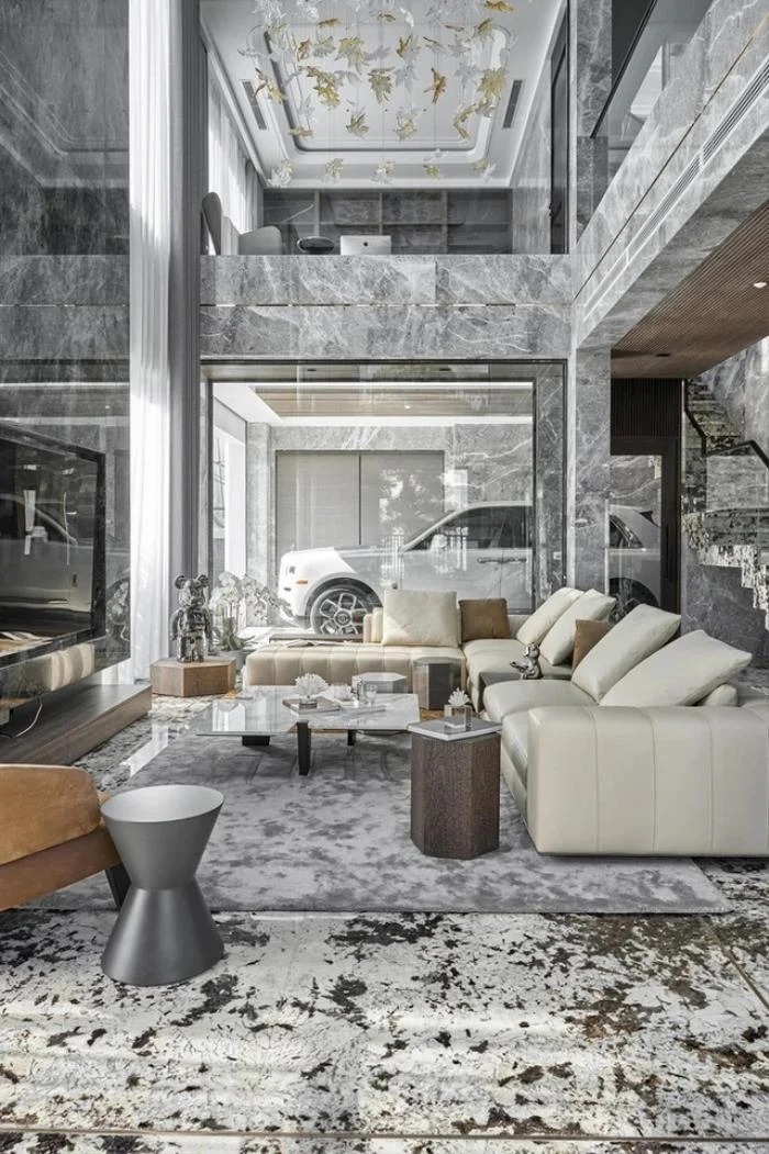 Căn biệt thự với tổng diện tích 800 m2 gây ấn tượng với nhiều người nhờ lớp đá ốp cẩm thạch, đồ nội thất sang chảnh đến từ một trong những thương hiệu nội thất hàng đầu thế giới - Minotti.