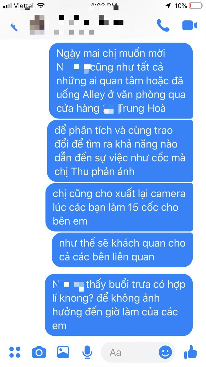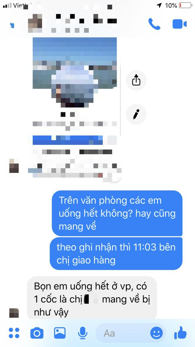 Tại buổi trao đổi, chị H.N. cho biết người thực sự sử dụng cốc trà sữa được cho là có thạch sùng là chị T. (đồng nghiệp của chị H.N.).