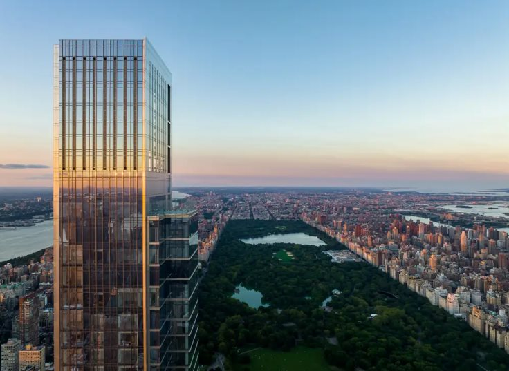 Trên đỉnh toà tháp cao gần 480 mét, căn penthouse chiếm 3 tầng trên cùng với 7 phòng ngủ, 9 phòng tắm và 23 căn phòng khác như phòng khách, phòng đọc sách, phòng làm việc, nhà bếp, phòng khiêu vũ, hồ bơi trong nhà và đài quan sát... Căn hộ này có thể nhìn ra công viên Central Park của thành phố. Cư dân của toà Central Park Tower thậm chí còn có thể đứng trên cao nhìn xuống toà nhà biểu tượng của New York là Empire State Building.
