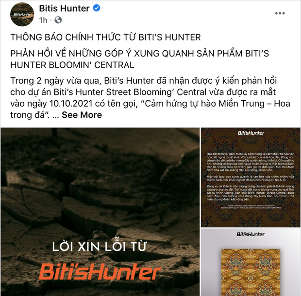 Trong 2 ngày vừa qua, Biti’s Hunter đã nhận được ý kiến phản hồi cho dự án Biti’s Hunter Street Blooming’ Central vừa được ra mắt vào ngày 10.10.2021 có tên gọi, "Cảm hứng tự hào Miền Trung - Hoa trong đá".