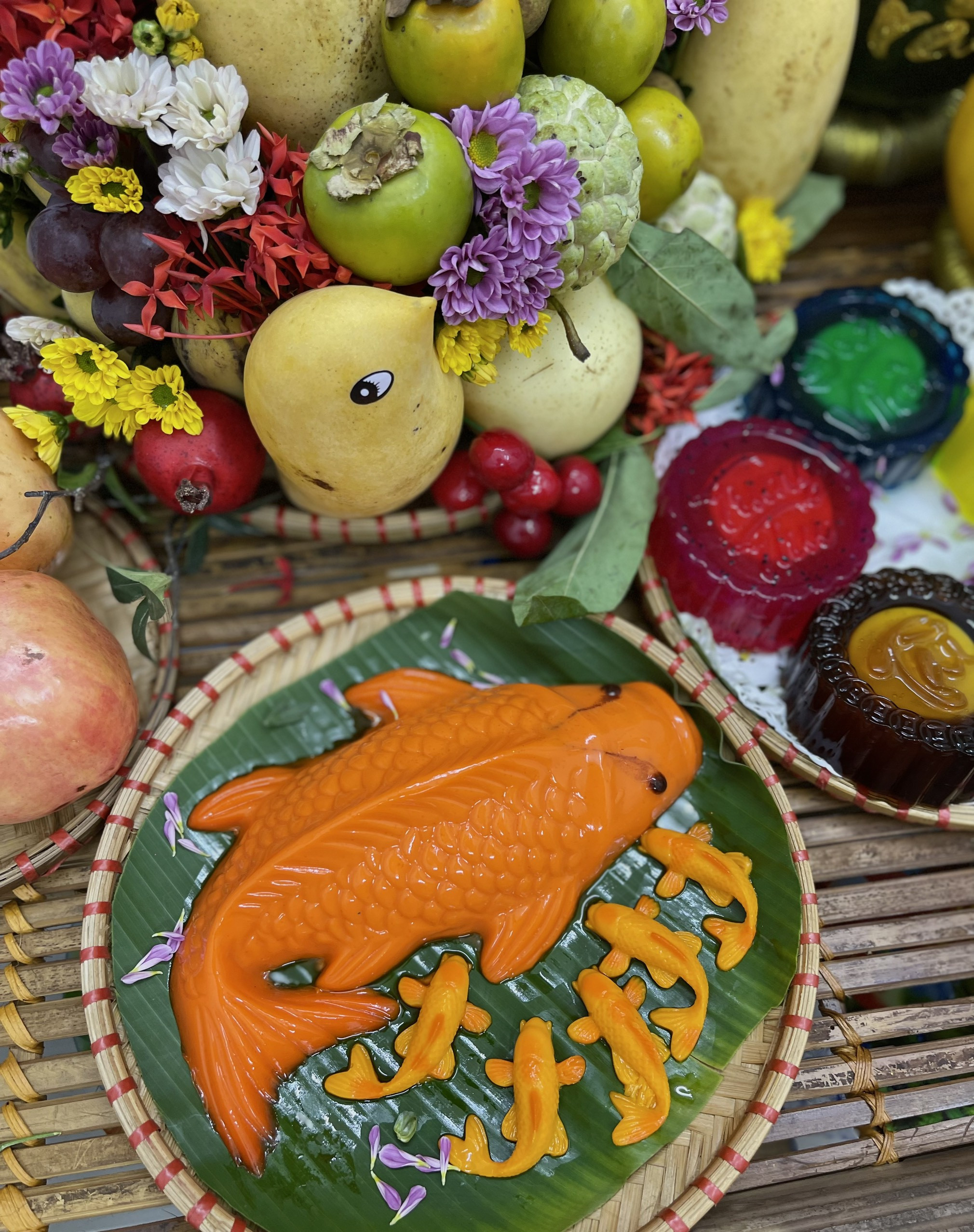 Mẹt bánh rau câu ngũ sắc nhân caramen: 200.000 đồng