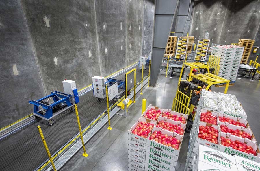 Tại một hệ thống kho lạnh, nhiệt độ chuẩn luôn dưới 2 độ C. Kho lạnh được chia làm 4 hệ thống kho (từ 1 đến 4) vận hành hoàn toàn tự động. 14 robot và hệ thống xe nâng nhận, xếp hàng trực tiếp từ container vào kho và ngược lại. Một con robot bốc, xếp trong một giờ được 1 container 40 fits.